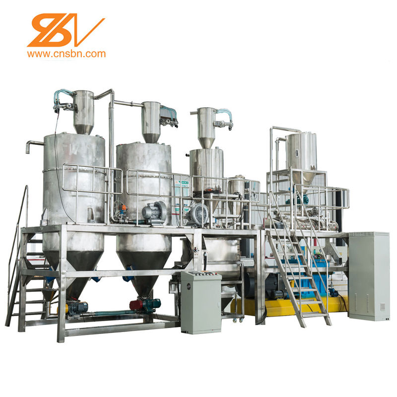 مخلوط کن روبانی → بالابر سطلی → قیف ذخیره سازی → کندیشنر → اکسترودر دو پیچی → نوار نقاله هوا → خشک کن هفت لایه → نوار نقاله هوا → اسپری روغن → غلتک طعم دهنده → نوار نقاله خنک کننده → نوار نقاله هوا → الک → نوار نقاله هوا